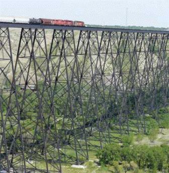 trails, and an orienteering course. High Level Bridge - (CPR) Built in 1909, this is the longest and highest bridge of its type of construction in the world. Extends over 1.6 km (1 mi.) across the coulees to Lethbridge. Height: 97 meters. Indian Battle Park - Named after the last great